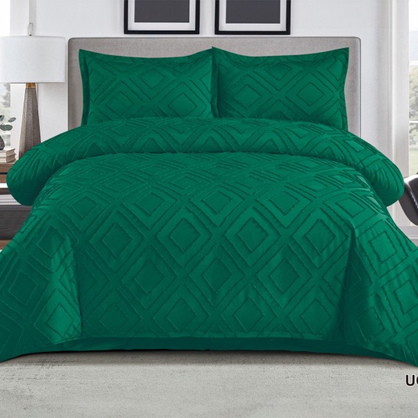 Lenjerie de Pat Premium, Bumbac Finet, Smocuri Brodate, 4 Piese, Nesifonabilă și Durabilă, Geometry, Verde Smarald, Super Design Pucioasa, cod produs: SDP-UC-02