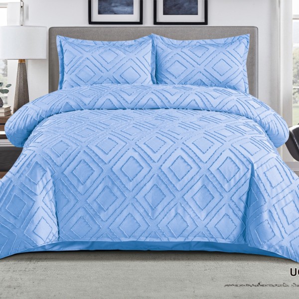 Lenjerie de Pat Premium, Bumbac Finet, Smocuri Brodate, 4 Piese, Nesifonabilă și Durabilă, Geometry, Bleu, Super Design Pucioasa, cod produs: SDP-UC-06
