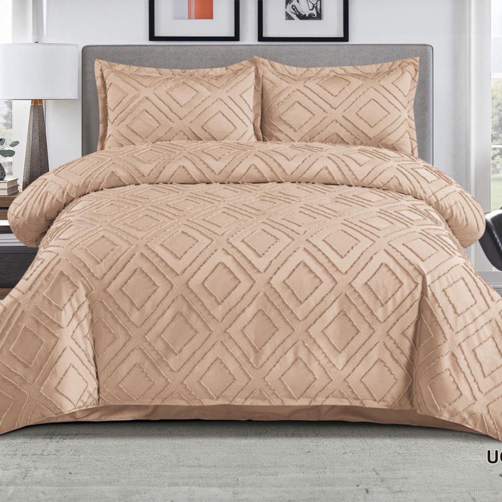 Transformă dormitorul într-un spațiu de lux cu noua lenjerie de pat dublu din finet de bumbac 100%, cu smocuri brodate în relief – o țesătură revoluționară care combină rafinamentul cu funcționalitatea, pentru un confort desăvârșit în fiecare noapte.
