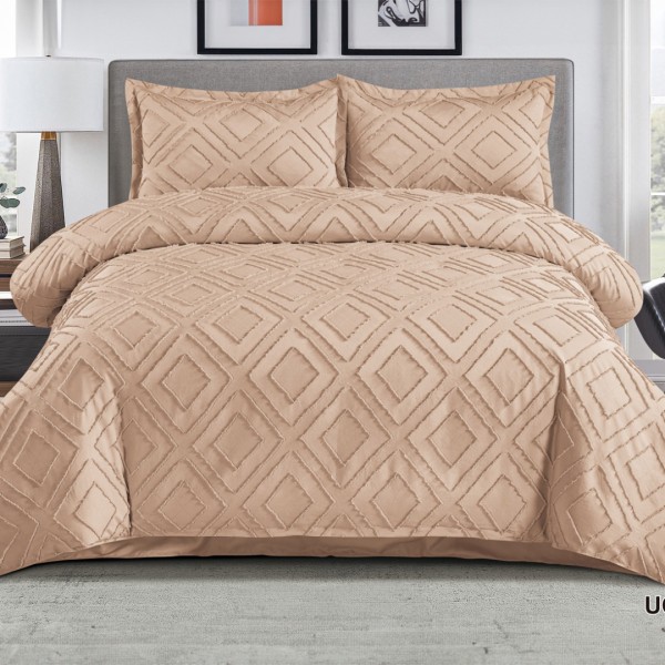 Lenjerie de Pat Premium, Bumbac Finet, Smocuri Brodate, 4 Piese, Nesifonabilă și Durabilă, Geometry, Cappuccino, Super Design Pucioasa, cod produs: SDP-UC-09