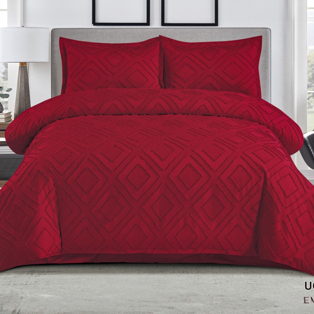 Lenjerie de Pat Premium, Bumbac Finet, Smocuri Brodate, 4 Piese, Nesifonabilă și Durabilă, Geometry, Rosu, Super Design Pucioasa, cod produs: SDP-UC-11