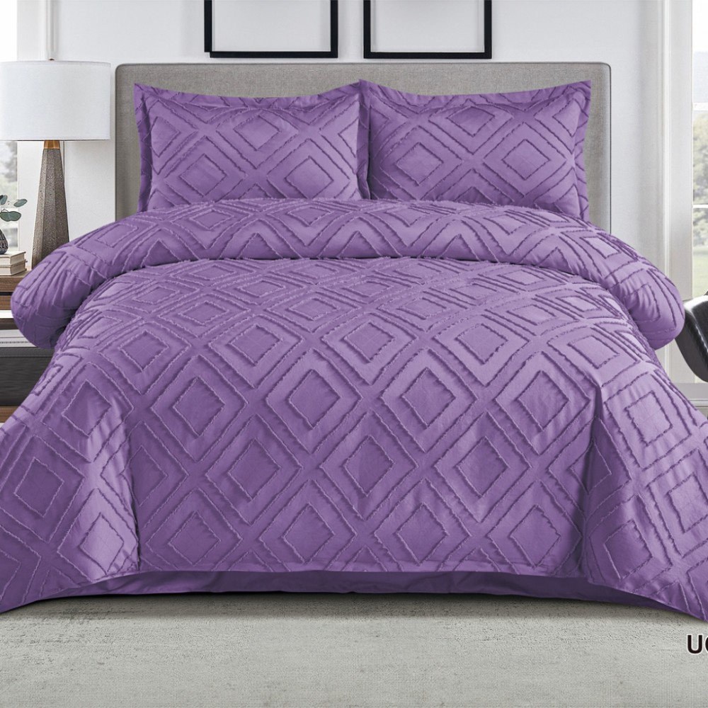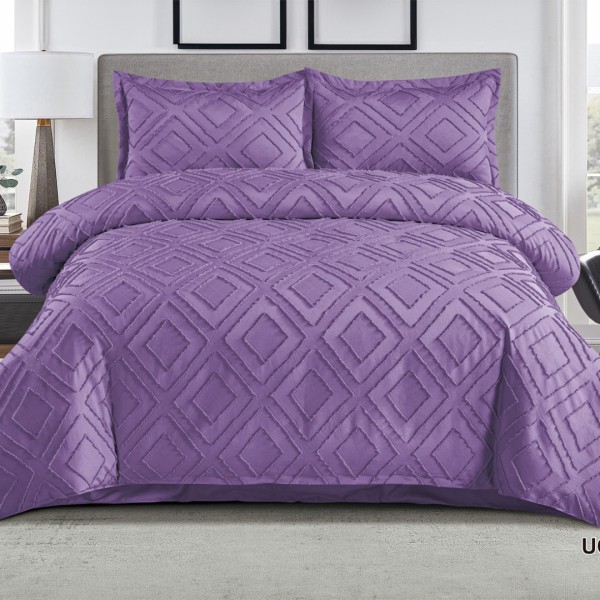 Lenjerie de Pat Premium, Bumbac Finet, Smocuri Brodate, 4 Piese, Nesifonabilă și Durabilă, Geometry, Mov, Super Design Pucioasa, cod produs: SDP-UC-13