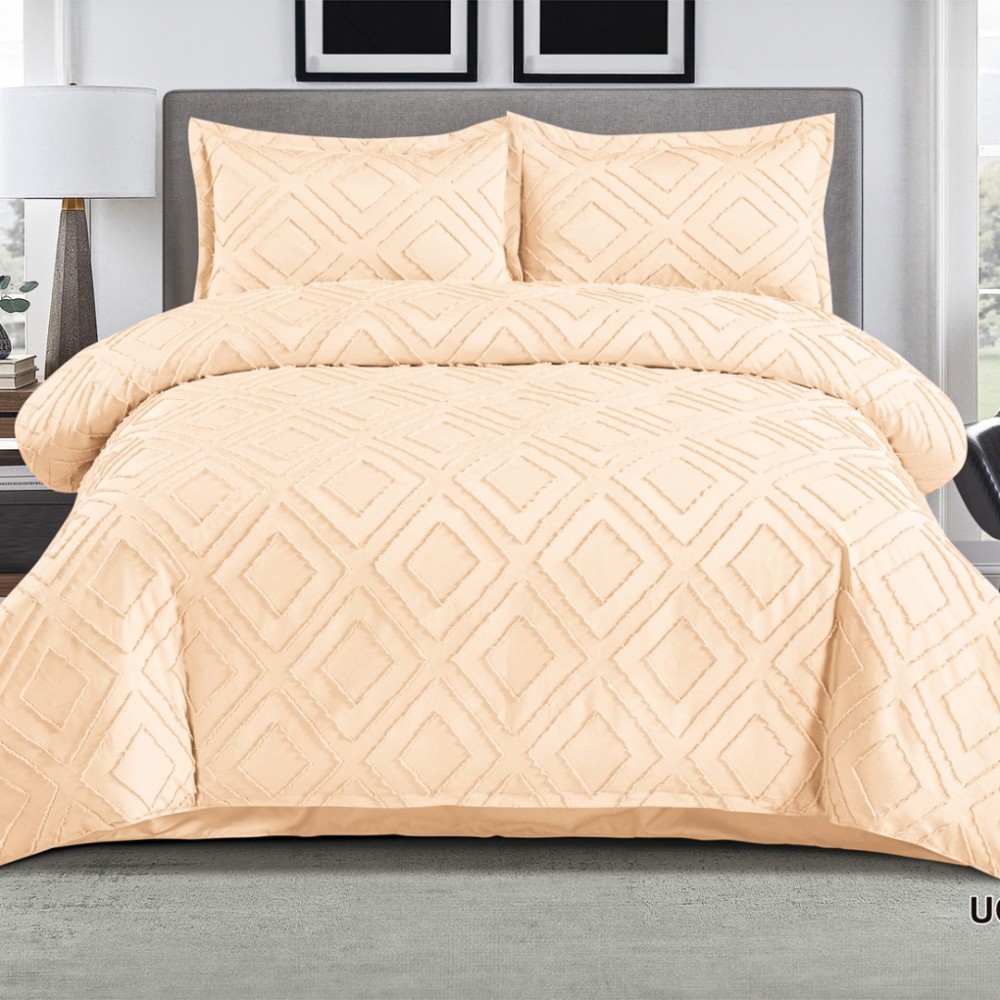Lenjerie de Pat Premium, Bumbac Finet, Smocuri Brodate, 4 Piese, Nesifonabilă și Durabilă, Geometry, Bej deschis, Super Design Pucioasa, cod produs: SDP-UC-14