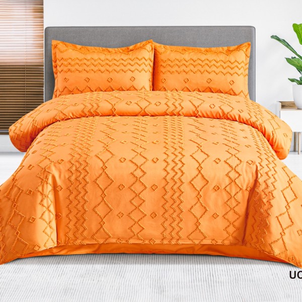 Lenjerie de Pat Premium, Bumbac Finet, Smocuri Brodate, 4 Piese, Nesifonabilă și Durabilă, Zig-Zag, Portocaliu, Super Design Pucioasa, cod produs: SDP-UC-19