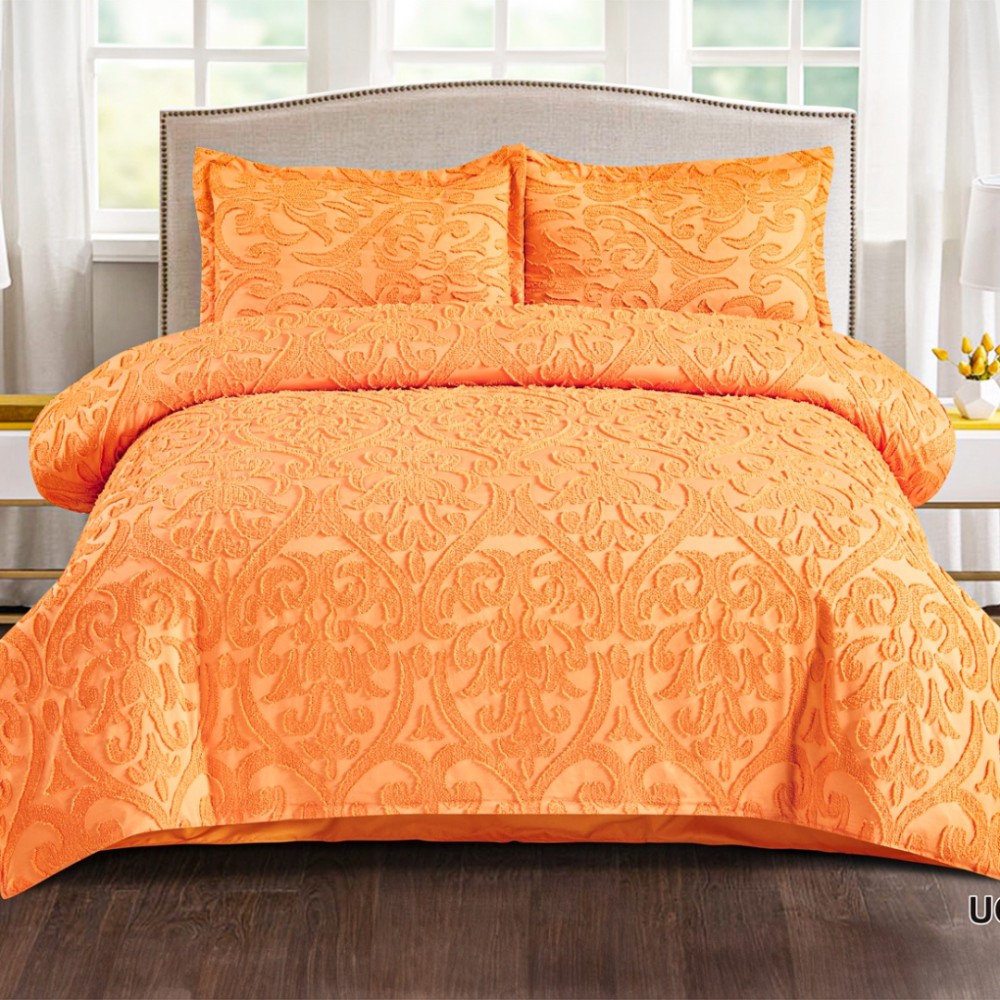 Lenjerie de Pat Premium, Bumbac Finet, Smocuri Brodate, 4 Piese, Nesifonabilă și Durabilă, Royal, Portocaliu, Super Design Pucioasa, cod produs: SDP-UC-37