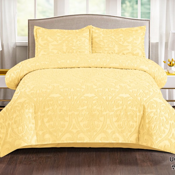 Lenjerie de Pat Premium, Bumbac Finet, Smocuri Brodate, 4 Piese, Nesifonabilă și Durabilă, Royal, Galben Pai, Super Design Pucioasa, cod produs: SDP-UC-41