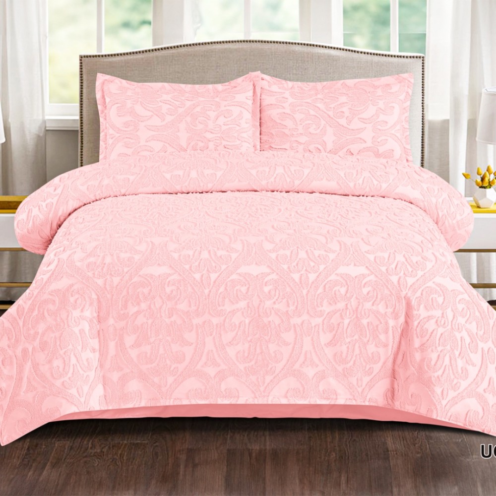 Transformă dormitorul într-un spațiu de lux cu noua lenjerie de pat dublu din finet de bumbac 100%, cu smocuri brodate în relief – o țesătură revoluționară care combină rafinamentul cu funcționalitatea, pentru un confort desăvârșit în fiecare noapte.
