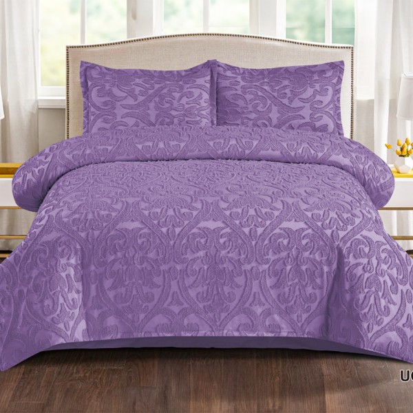 Lenjerie de Pat Premium, Bumbac Finet, Smocuri Brodate, 4 Piese, Nesifonabilă și Durabilă, Royal, Mov, Super Design Pucioasa, cod produs: SDP-UC-49