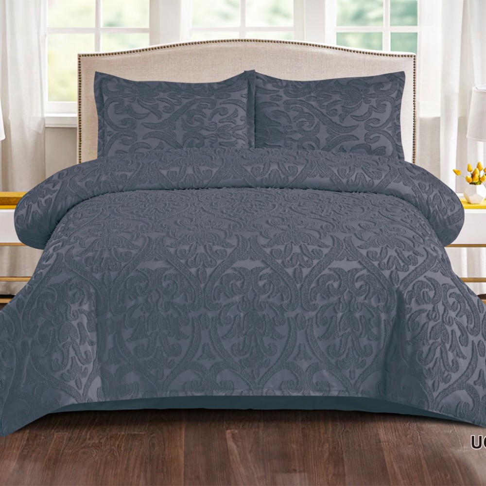Transformă dormitorul într-un spațiu de lux cu noua lenjerie de pat dublu din finet de bumbac 100%, cu smocuri brodate în relief – o țesătură revoluționară care combină rafinamentul cu funcționalitatea, pentru un confort desăvârșit în fiecare noapte.