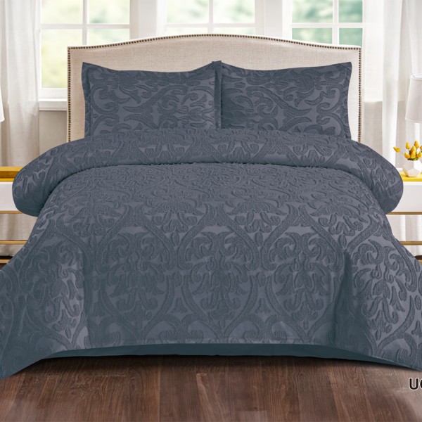 Lenjerie de Pat Premium, Bumbac Finet, Smocuri Brodate, 4 Piese, Nesifonabilă și Durabilă, Royal, Antracit, Super Design Pucioasa, cod produs: SDP-UC-51