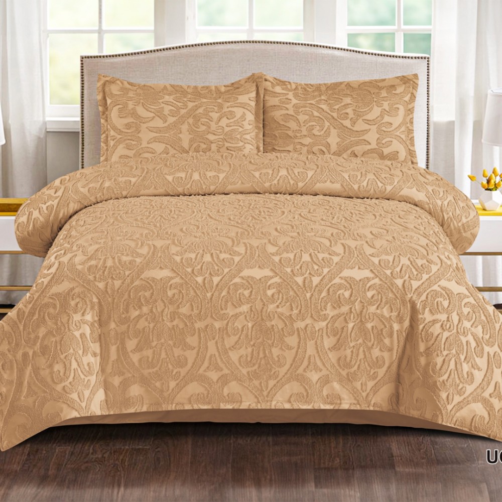 Lenjerie de Pat Premium, Bumbac Finet, Smocuri Brodate, 4 Piese, Nesifonabilă și Durabilă, Royal, Bej inchis, Super Design Pucioasa, cod produs: SDP-UC-53