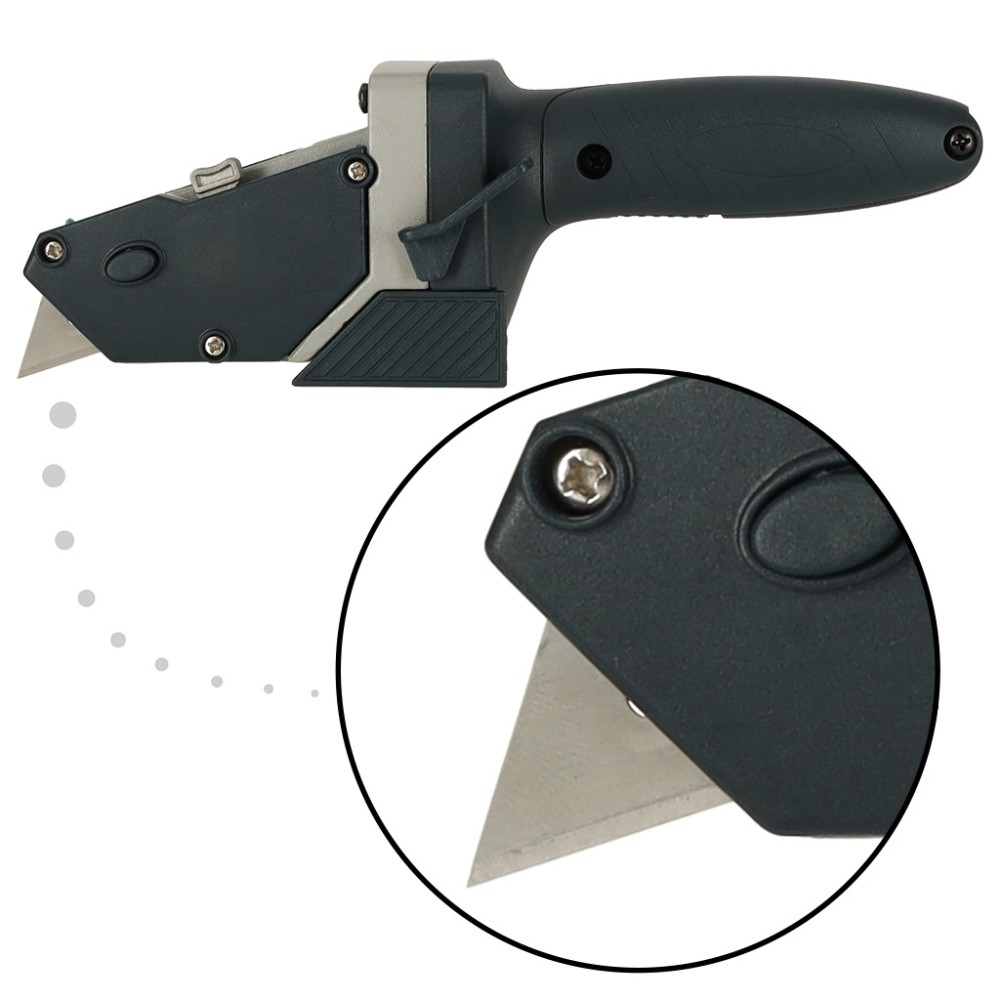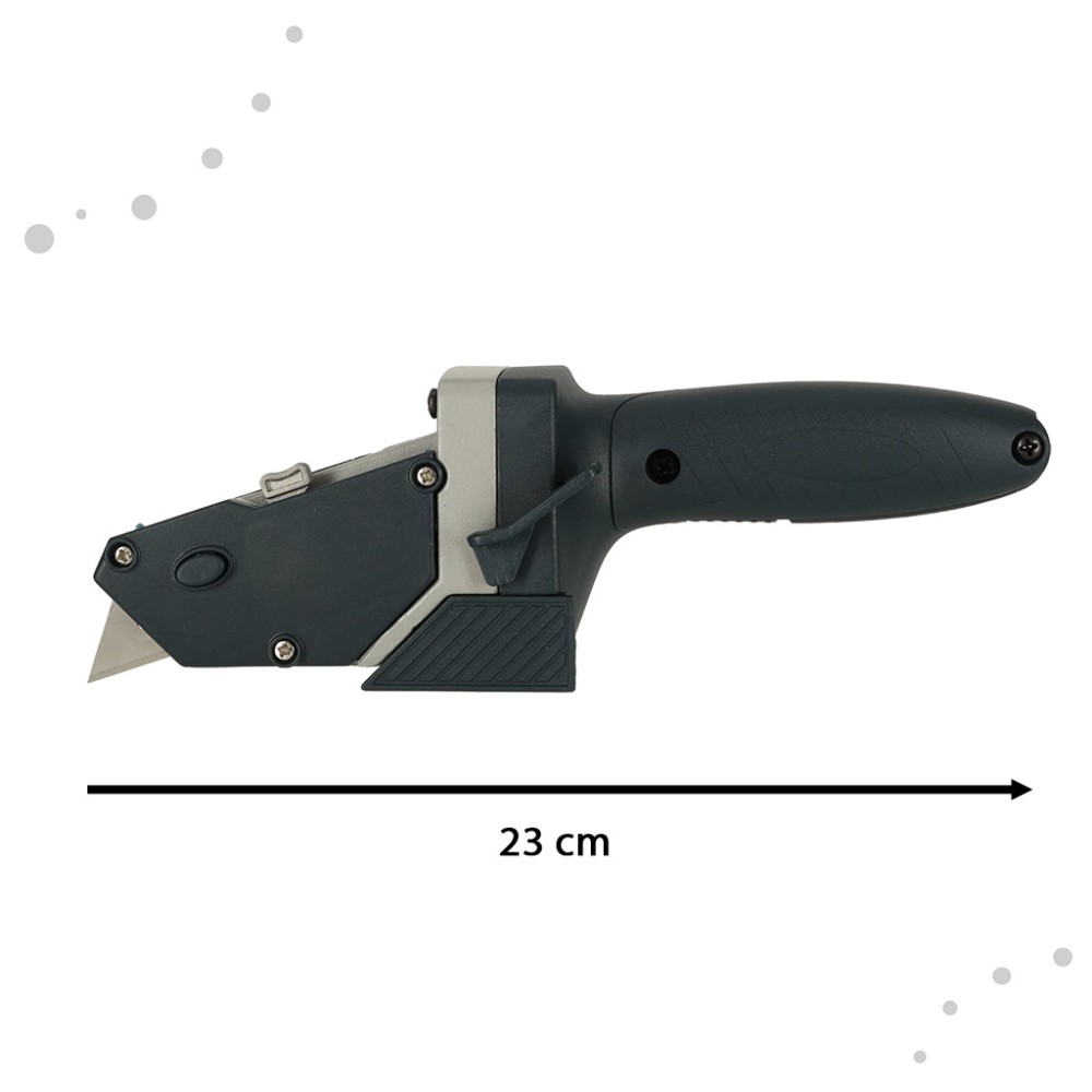 Lama ascuțită sub forma unei lamele trapezoidale extensibile garantează tăierea precisă a plăcilor de diferite grosimi - și fără efort excesiv. Mecanismul de retragere a lamei oferă un plus de siguranță - puteți retrage lama atunci când ați terminat, eliminând riscul de rănire.