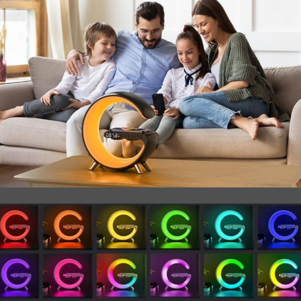 Descoperiti confortul si versatilitatea unei solutii all-in-one cu lampa RGB, incarcator wireless si boxa Bluetooth - tot ce aveti nevoie pentru o experienta de relaxare si divertisment completa intr-un singur dispozitiv.