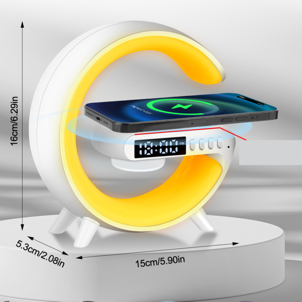 Experimentati confortul si utilitatea unui dispozitiv multifunctional cu lampa RGB, incarcator wireless rapid si boxa Bluetooth, totul intr-un singur produs compact si elegant.