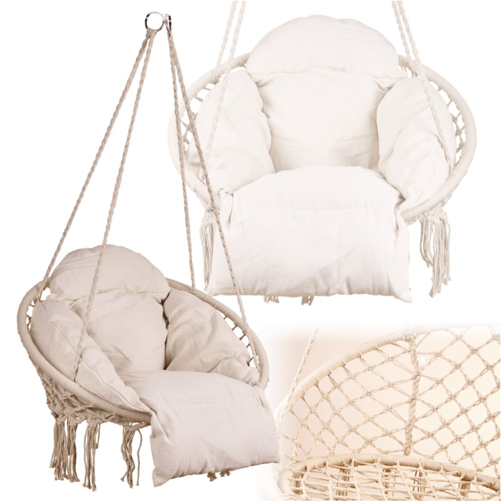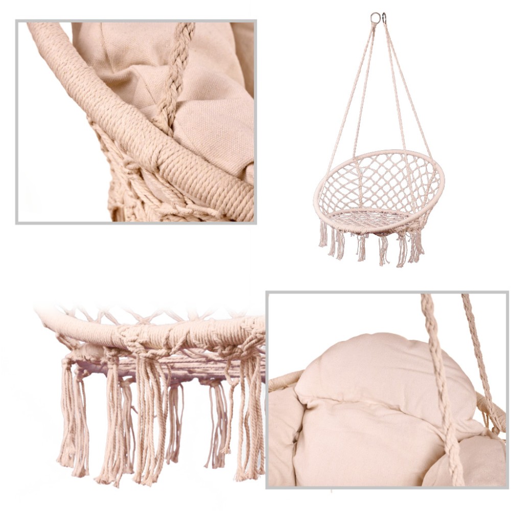 Leagan de gradina suspendat, cu perna XXL, sarcina maxima 120 kg, bej
