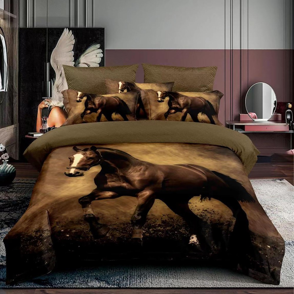 Lenjerie 3D, pat 1 persoana, 3 piese, Finet, Ralex Pucioasa, cai, maro, cod produs: RXS102