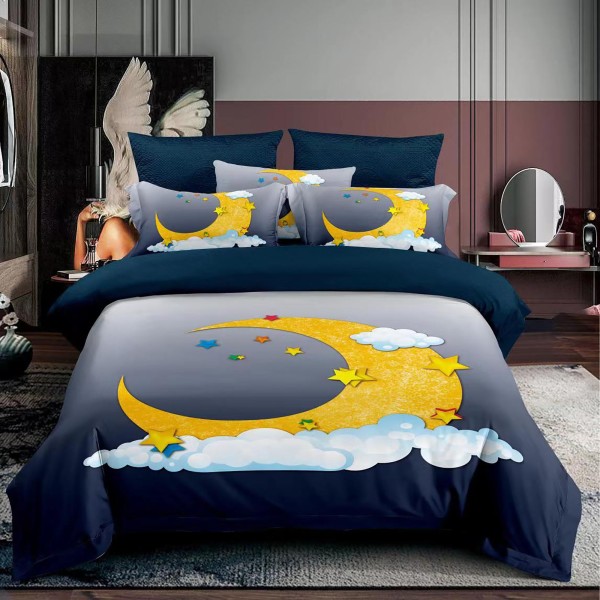 Lenjerie 3D, pat 1 persoana, 3 piese, Finet, Ralex Pucioasa, luna, stele, albastru, cod produs: RXS106