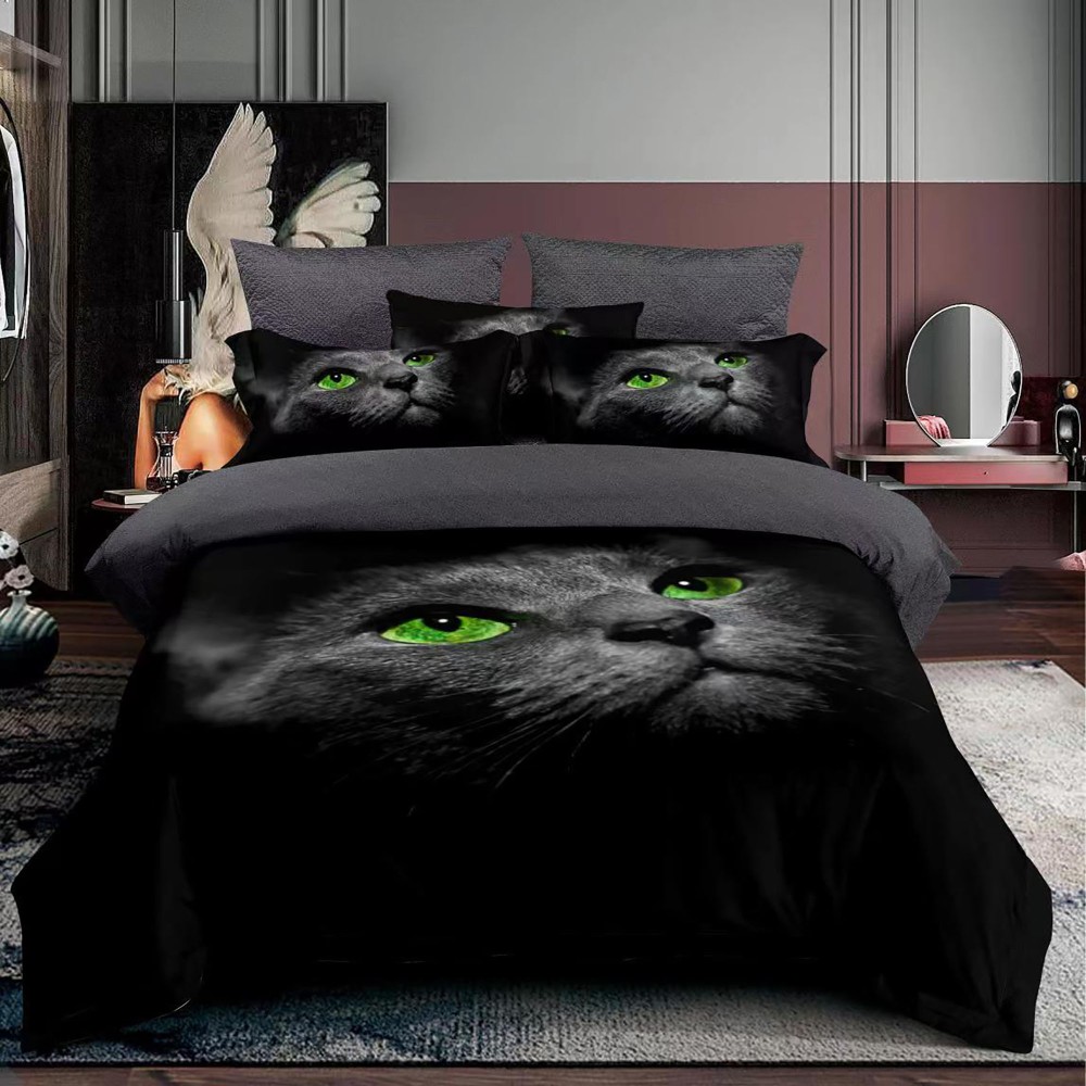 Lenjerie 3D, pat 1 persoana, 3 piese, Finet, Ralex Pucioasa, pisica, negru, cod produs: RXS109