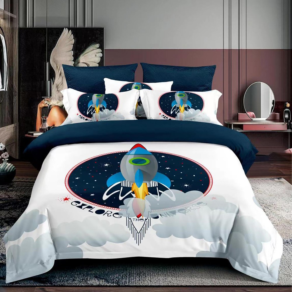 Lenjerie 3D, pat 1 persoana, 3 piese, Finet, Ralex Pucioasa, racheta, alb, bleumarin , cod produs: RXS124