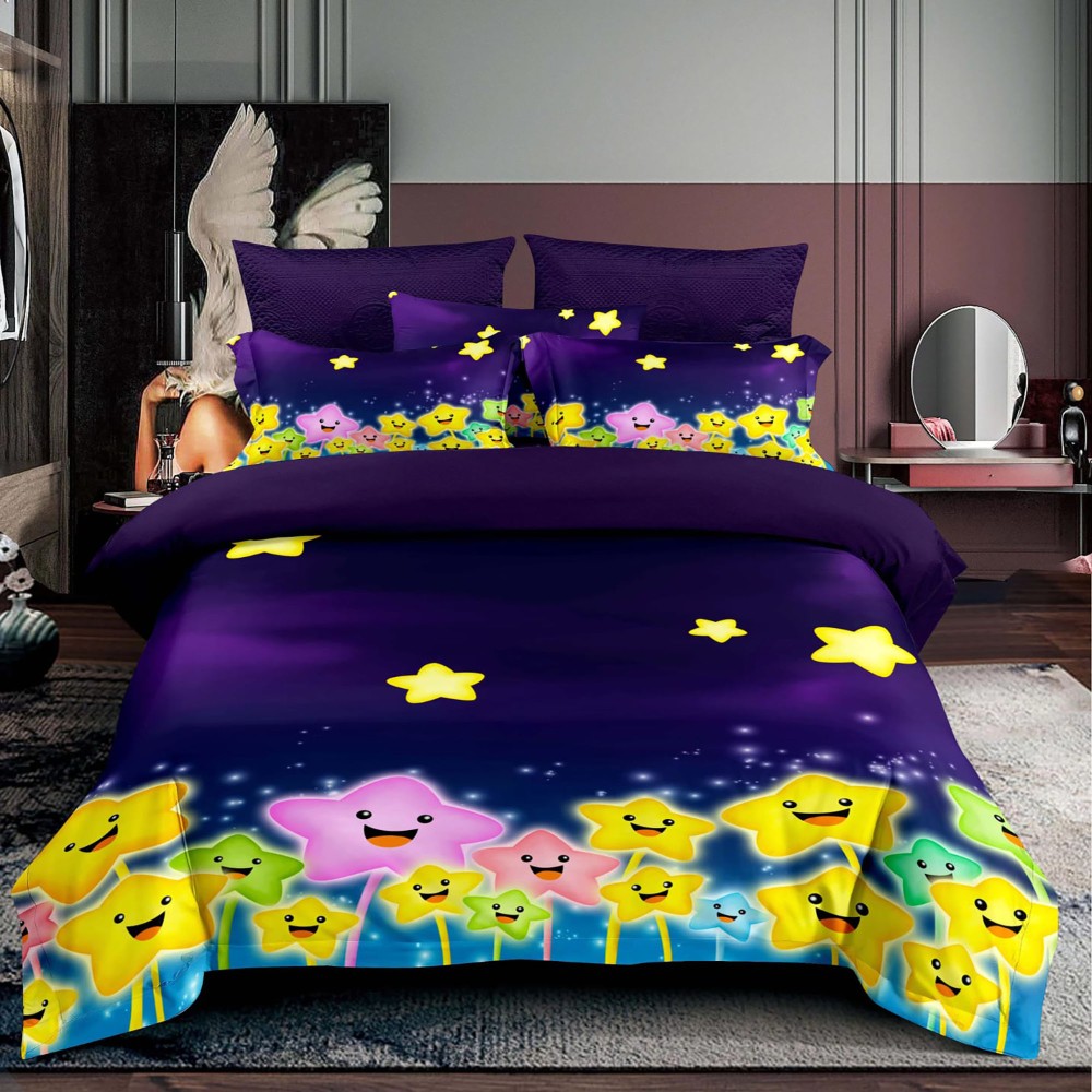 Lenjerie 3D, pat 1 persoana, 3 piese, Finet, Ralex Pucioasa, stelute , mov , cod produs: RXS127