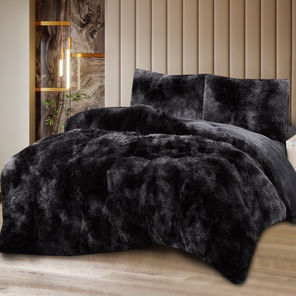 Lenjerie Cocolino Fluffy Super Pufoasă, Set 4 Piese, Pat Dublu, Cearșaf cu elastic – Căldură și Confort Premium, Ideală pentru Nopți Friguroase, Negru degrade, cod produs: ELN-FL08