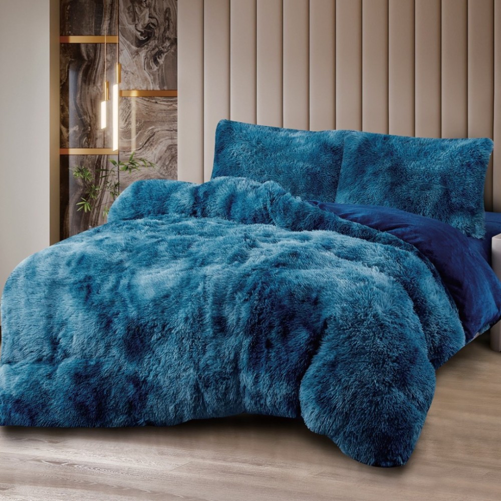 Lenjerie Cocolino Fluffy Super Pufoasă, Set 4 Piese, Pat Dublu, Cearșaf cu elastic – Căldură și Confort Premium, Ideală pentru Nopți Friguroase, Turquoise degrade, cod produs: ELN-FL12