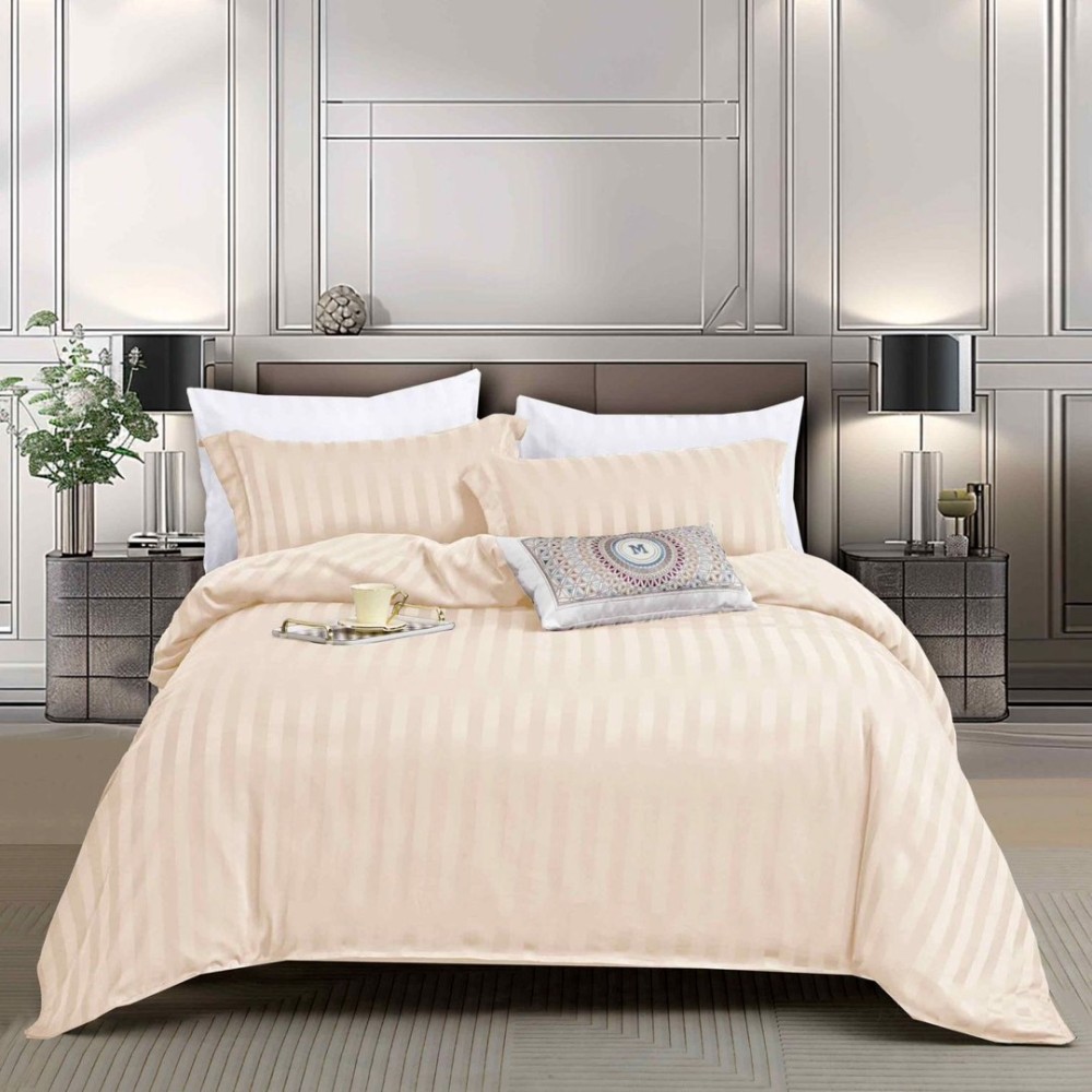 Lenjerie de Pat 1 Persoana, HoReCa, 4 Piese din Damasc Finetat - Lux, Confort și Întreținere Ușoară, Fără Călcare, Bej, Veluxio Home, cod produs: PRM-DX8-101