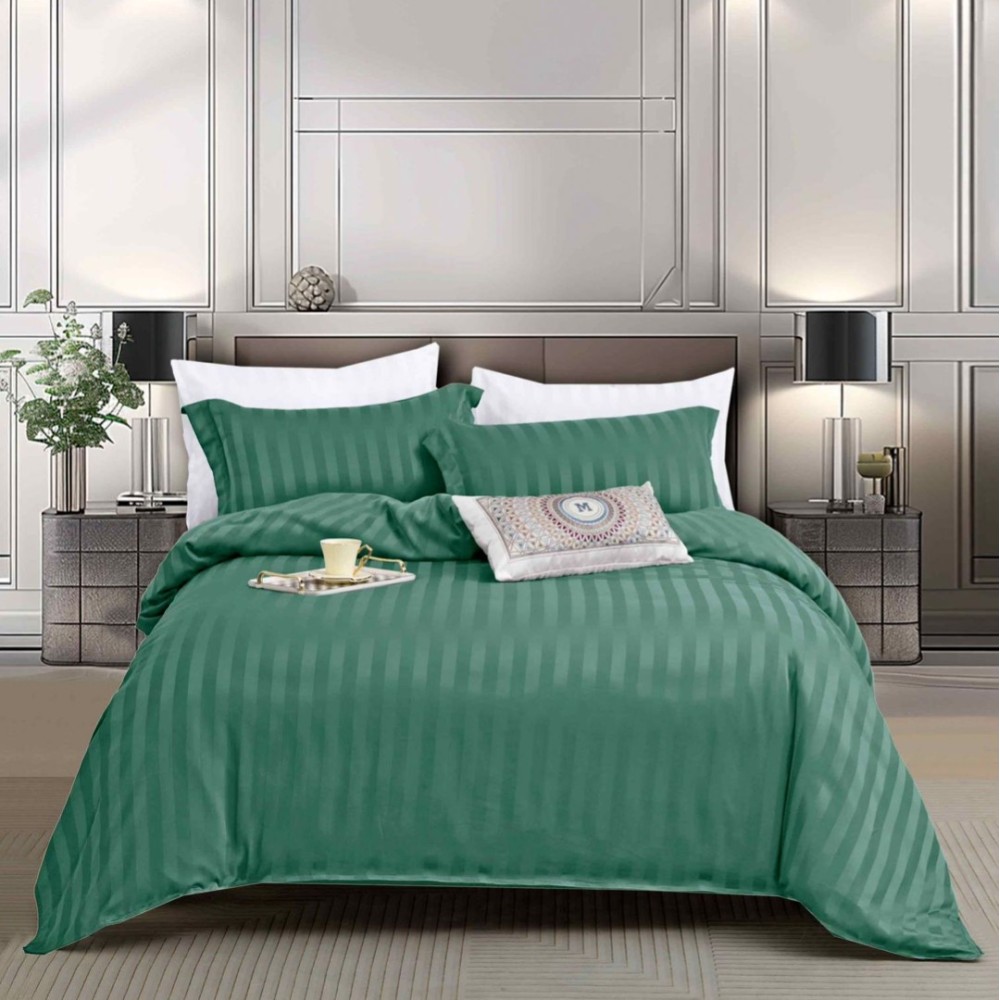 Lenjerie de Pat 1 Persoana, HoReCa, 4 Piese din Damasc Finetat - Lux, Confort și Întreținere Ușoară, Fără Călcare, Verde, Veluxio Home, cod produs: PRM-DX8-108