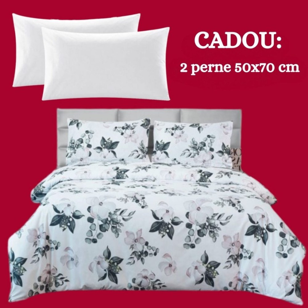 • Perne cadou incluse: Setul vine însoțit de două perne cadou de 50x70 cm, cu umplutură din vatelină siliconică, ideale pentru un somn odihnitor și un suport delicat al capului și gâtului.