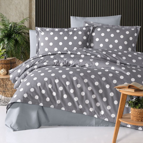 Lenjerie de pat dublu, 4 piese, Bumbac 100% Ranforce, Ralex Pucioasa, buline, alb , gri, cod produs: RXR4
