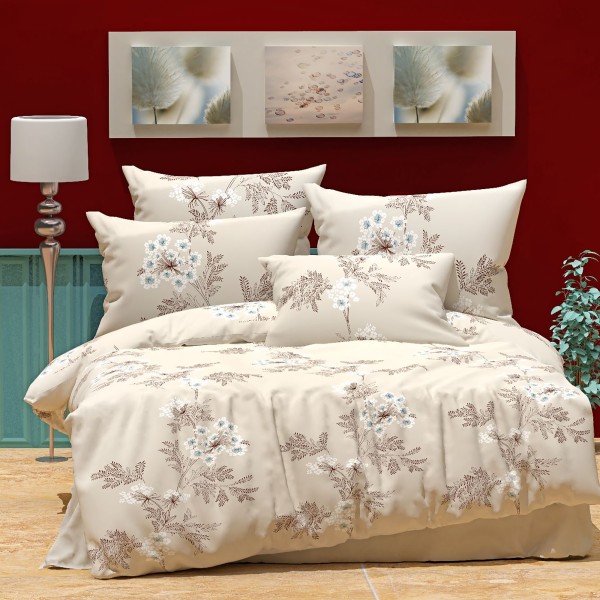 Lenjerie de pat dublu, 4 piese, Bumbac 100% Ranforce, Ralex Pucioasa, flori, bej , cod produs: RXR5