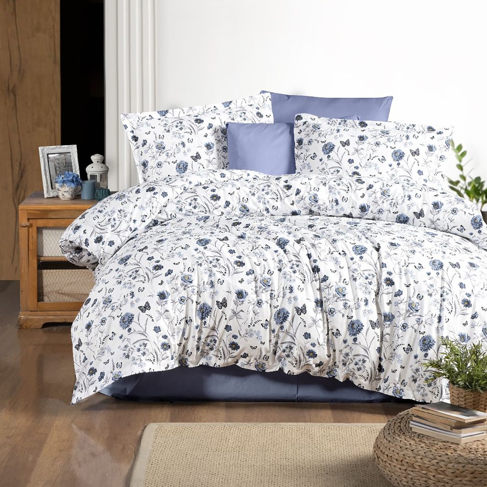 Lenjerie de pat dublu, 4 piese, Bumbac 100% Ranforce, Ralex Pucioasa, flori, alb, gri , cod produs: RXR13