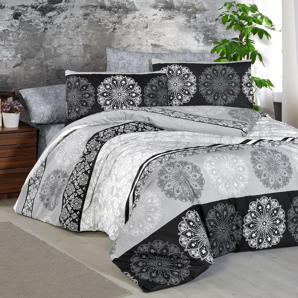 Lenjerie de pat dublu, 4 piese, Bumbac 100% Ranforce, Ralex Pucioasa, model elegant , gri, negru , cod produs: RXR15