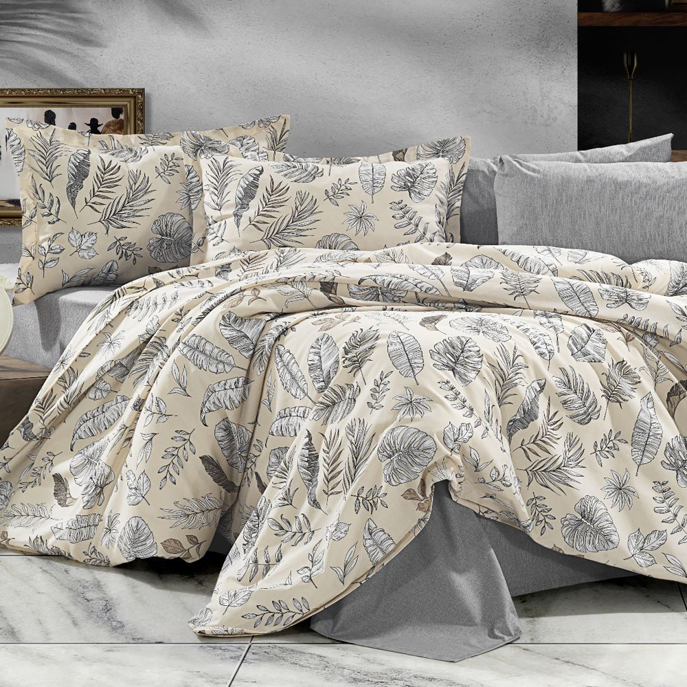Lenjerie de pat dublu, 4 piese, Bumbac 100% Ranforce, Ralex Pucioasa, frunze, gri, crem , cod produs: RXR21