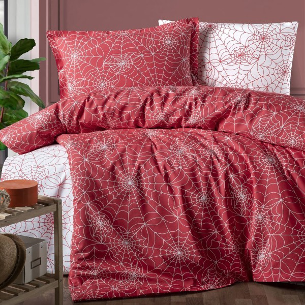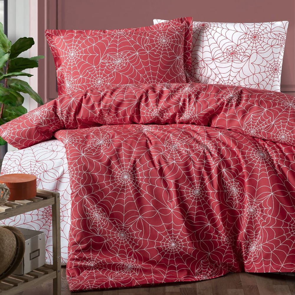 Lenjerie de pat dublu, 4 piese, Bumbac 100% Ranforce, Ralex Pucioasa, panza, alb, rosu , cod produs: RXR26
