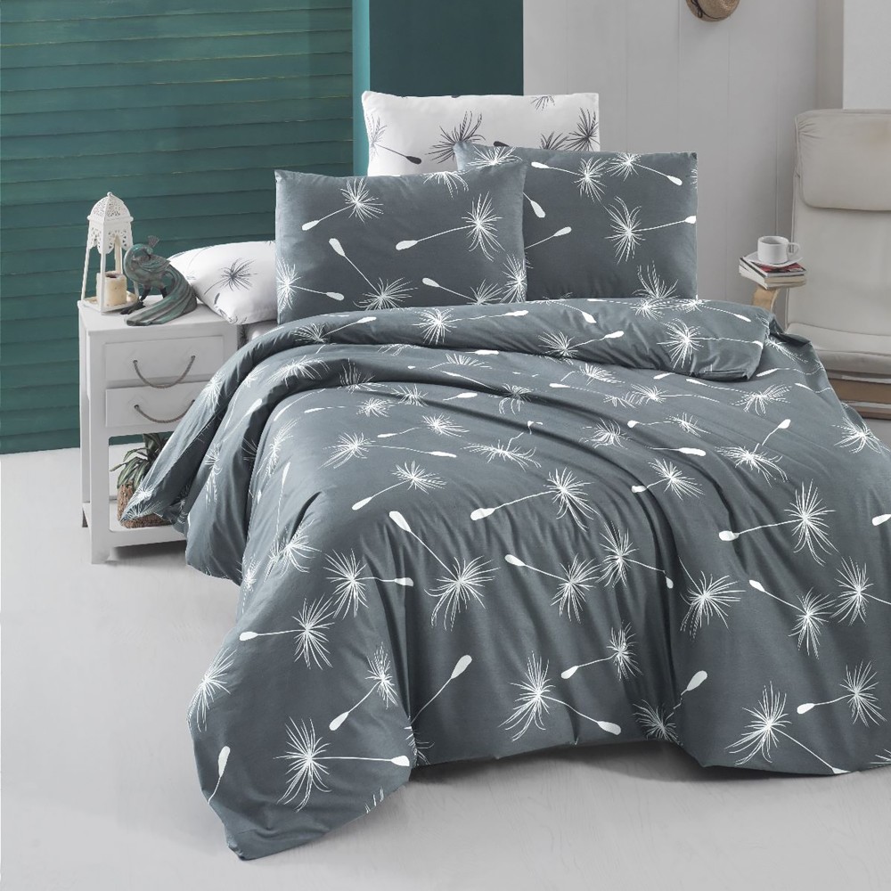 Lenjerie de pat dublu, 4 piese, Bumbac 100% Ranforce, Ralex Pucioasa, papadi, alb , gri, cod produs: RXR31