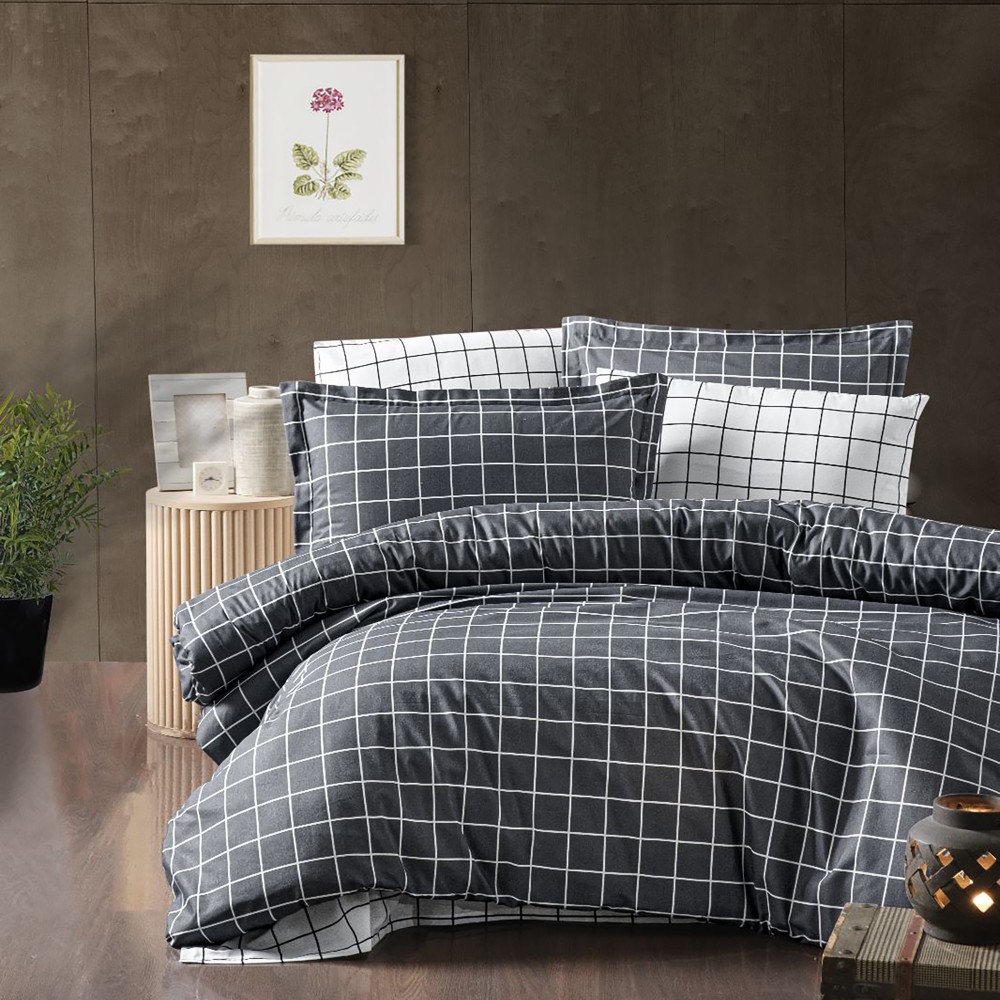 Lenjerie de pat dublu, 4 piese, Bumbac 100% Ranforce, Ralex Pucioasa, model clasic, gri, alb , cod produs: RXR36