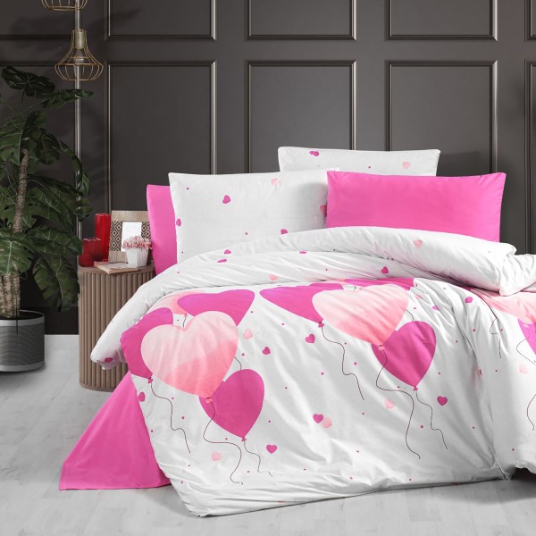 Lenjerie de pat dublu, 4 piese, Bumbac 100% Ranforce, Ralex Pucioasa, inimioare, alb , roz , cod produs: RXR37