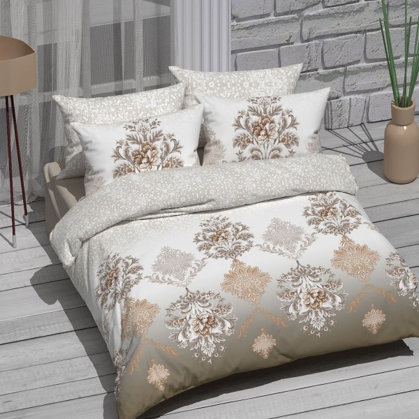 Lenjerie de pat dublu, 4 piese, Bumbac 100% Ranforce, Ralex Pucioasa, model elegant, bej, cod produs: RXR41