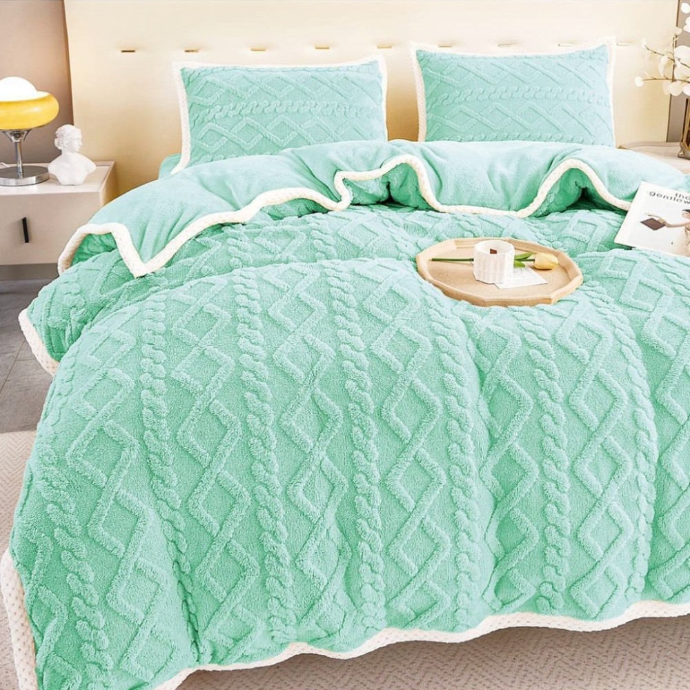 Lenjerie de Pat Cocolino Super Pufoasă cu Tricotaj în Relief – Set 4 Piese pentru Pat Dublu, Calitate Premium pentru somn odihnitor, Aqua, Super Design Pucioasa, cod produs: SDP-TC02