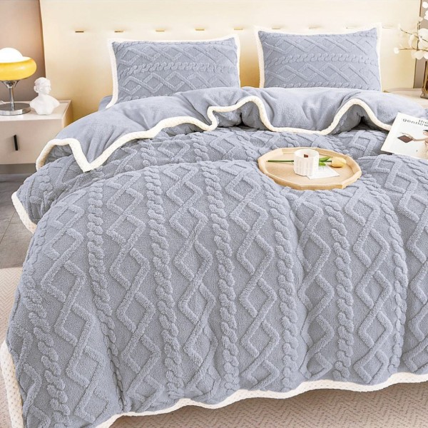 Lenjerie de Pat Cocolino Super Pufoasă cu Tricotaj în Relief – Set 4 Piese pentru Pat Dublu, Calitate Premium pentru somn odihnitor, Gri deschis, Super Design Pucioasa, cod produs: SDP-TC10