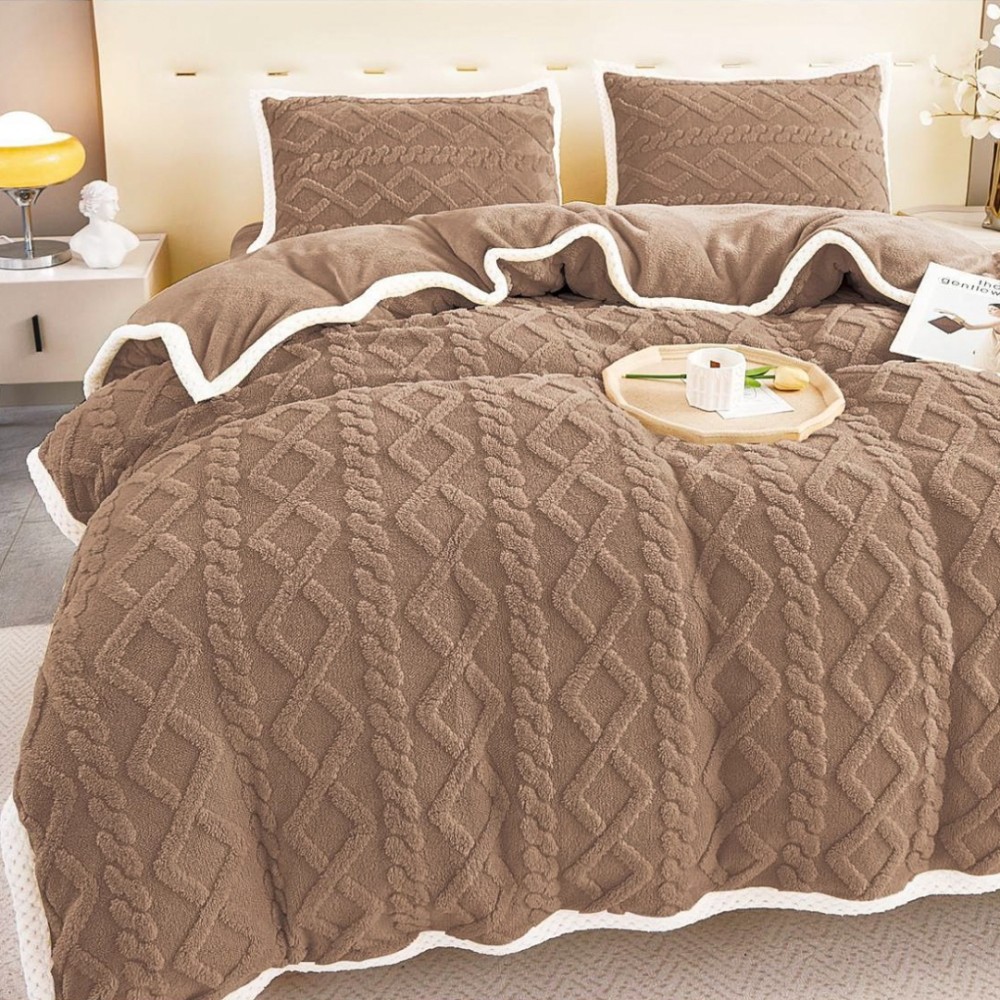 Lenjerie de Pat Cocolino Super Pufoasă cu Tricotaj în Relief – Set 4 Piese pentru Pat Dublu, Calitate Premium pentru somn odihnitor, Maro, Super Design Pucioasa, cod produs: SDP-TC12