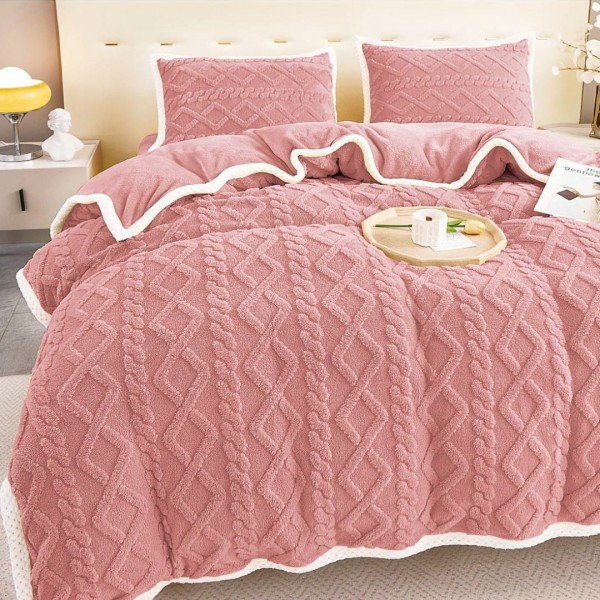 Lenjerie de Pat Cocolino Super Pufoasă cu Tricotaj în Relief – Set 4 Piese pentru Pat Dublu, Calitate Premium pentru somn odihnitor, Roz , Super Design Pucioasa, cod produs: SDP-TC11