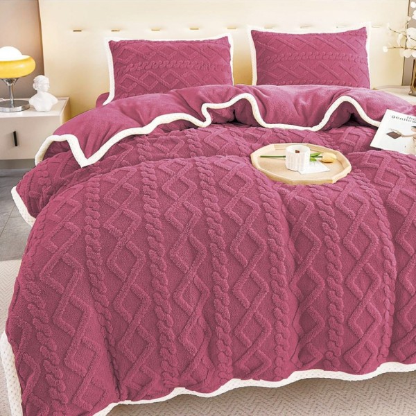 Lenjerie de Pat Cocolino Super Pufoasă cu Tricotaj în Relief – Set 4 Piese pentru Pat Dublu, Calitate Premium pentru somn odihnitor, Roz pudra, Super Design Pucioasa, cod produs: SDP-TC03