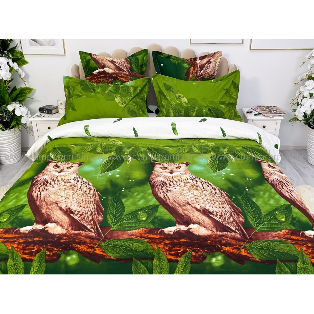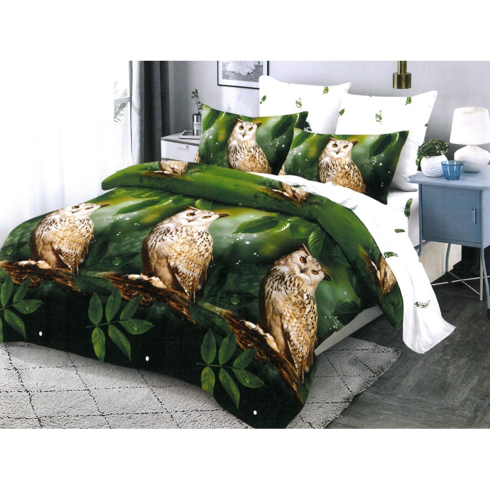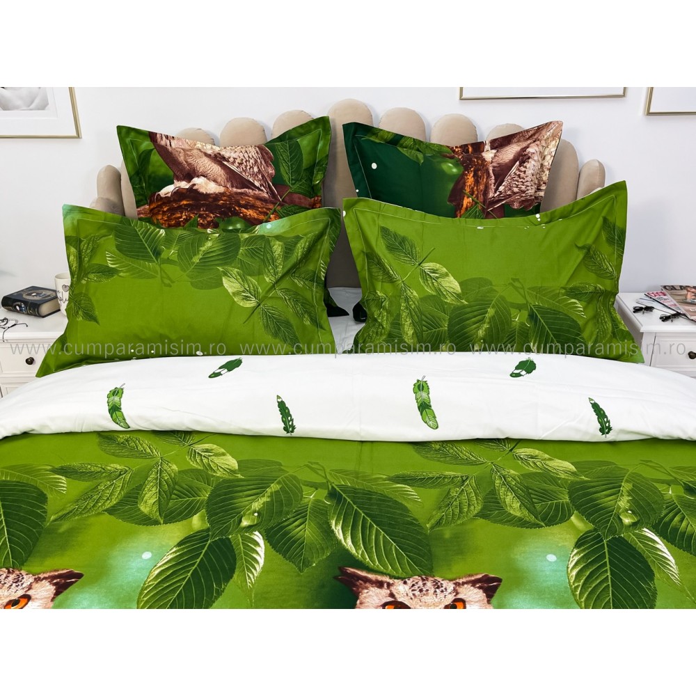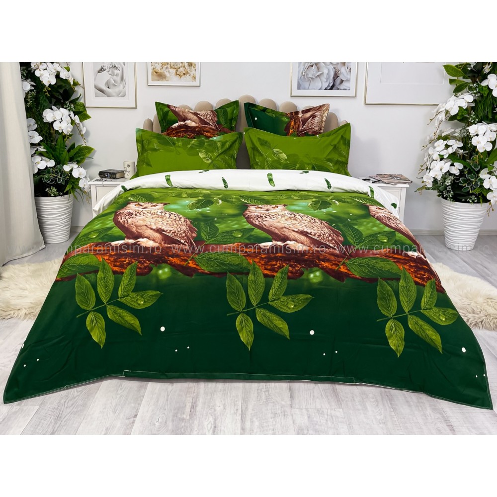 Lenjerie pat dublu, FINET, cu elastic, 6 piese, Verde, bufnite, Primavara Casa, cod produs: CFE75