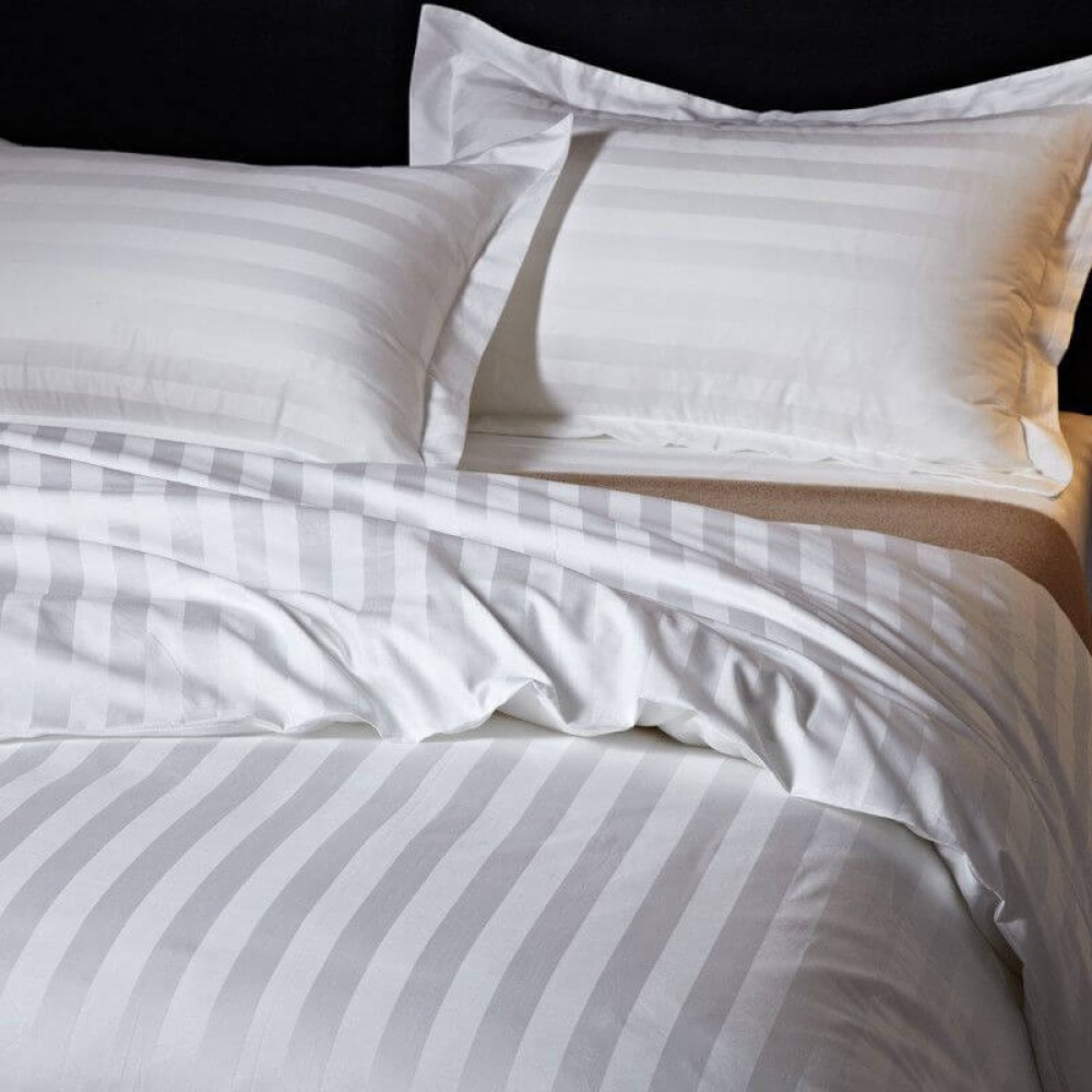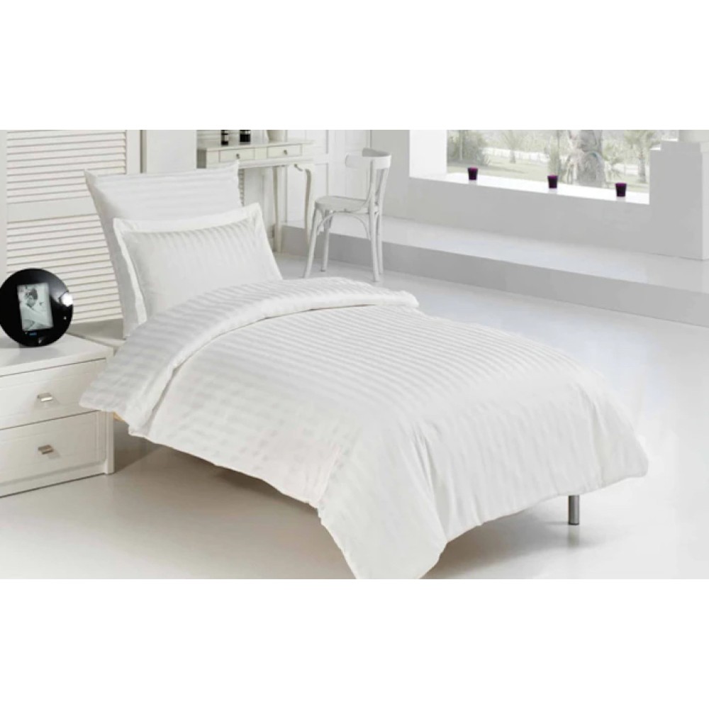 Lenjerie de pat single, pentru 1 persoana din damasc linear (tesatura din fabrica, ci nu imprimata), confectionata din bumbac 100%, cu 3 piese, folosita cel mai mult in regimul hotelier, datorita simplitatii si calitatii extraordinare.
