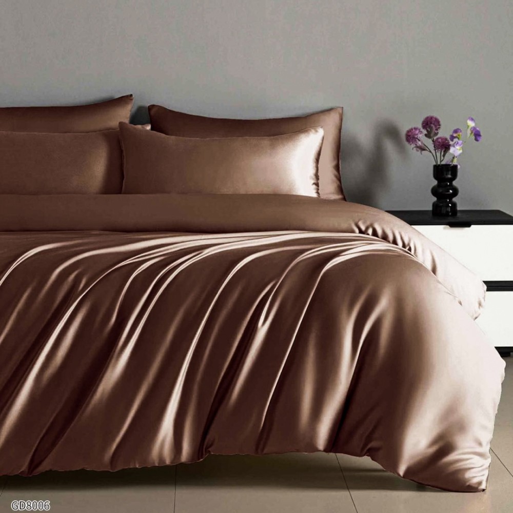 Lenjerie de Pat din Satin Extra Fin, Pat Dublu, 4 Piese, cu ELASTIC, Uni, Maro Ciocolata – Rafinament și Lux la Superlativ, Primavara Casa, cod produs: PRM-ST-GD8006