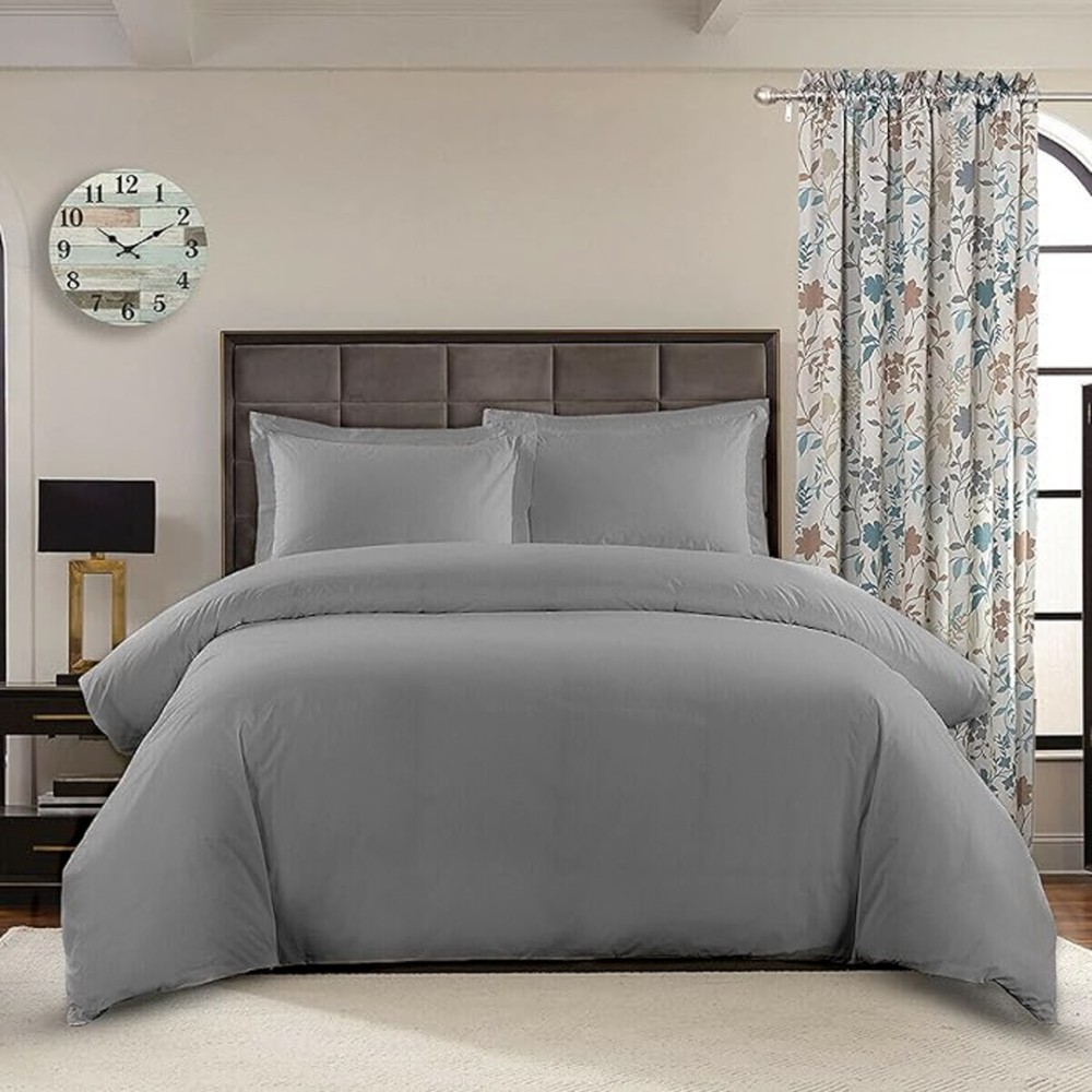 Lenjerie de pat dublu, 4 piese, Bumbac 100% Ranforce, Gri mediu V1, Ralex Pucioasa, cod produs: DKB14