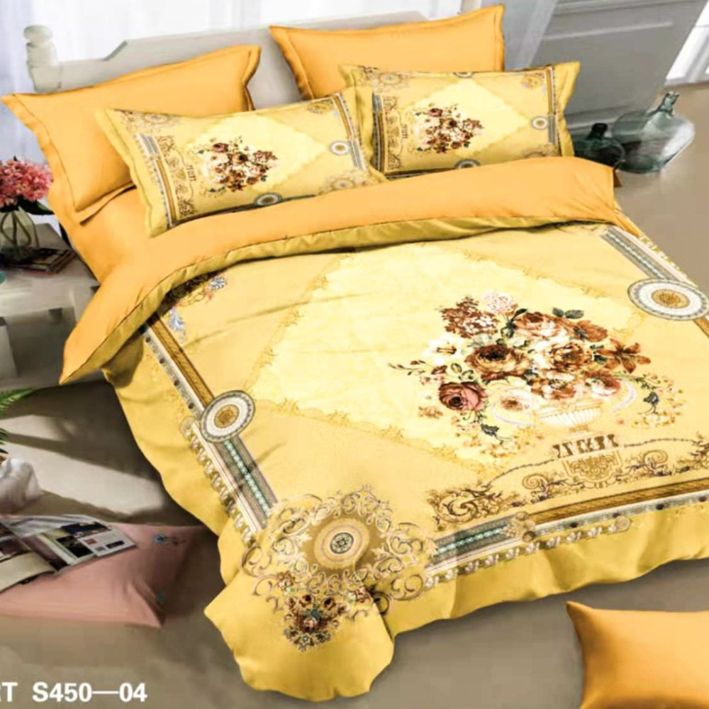 Lenjerie de Pat Dublu, 6 piese, Catifea 3D Premium - pentru Eleganță și Confort, Galben, flori, East Romania, cod produs: EST-CT-S450-04