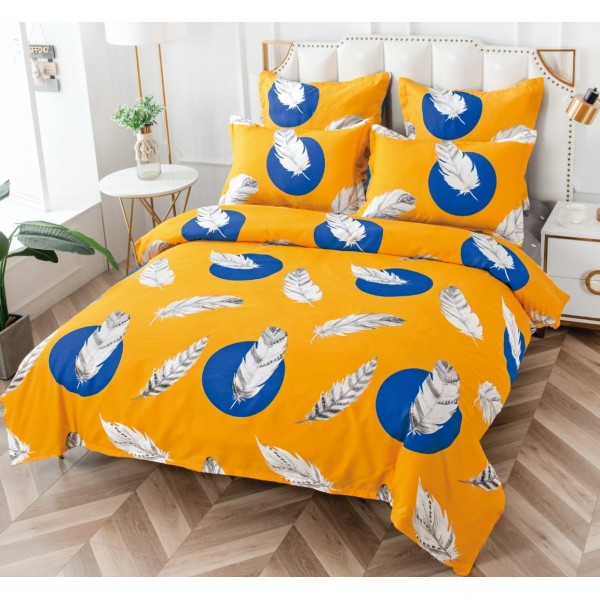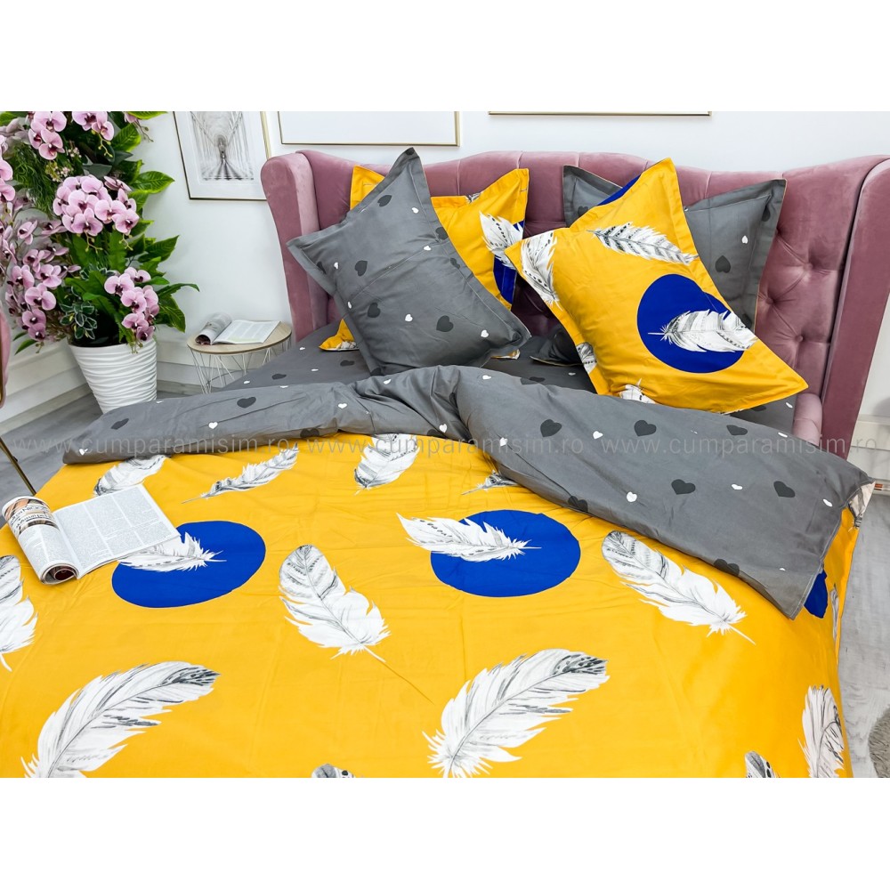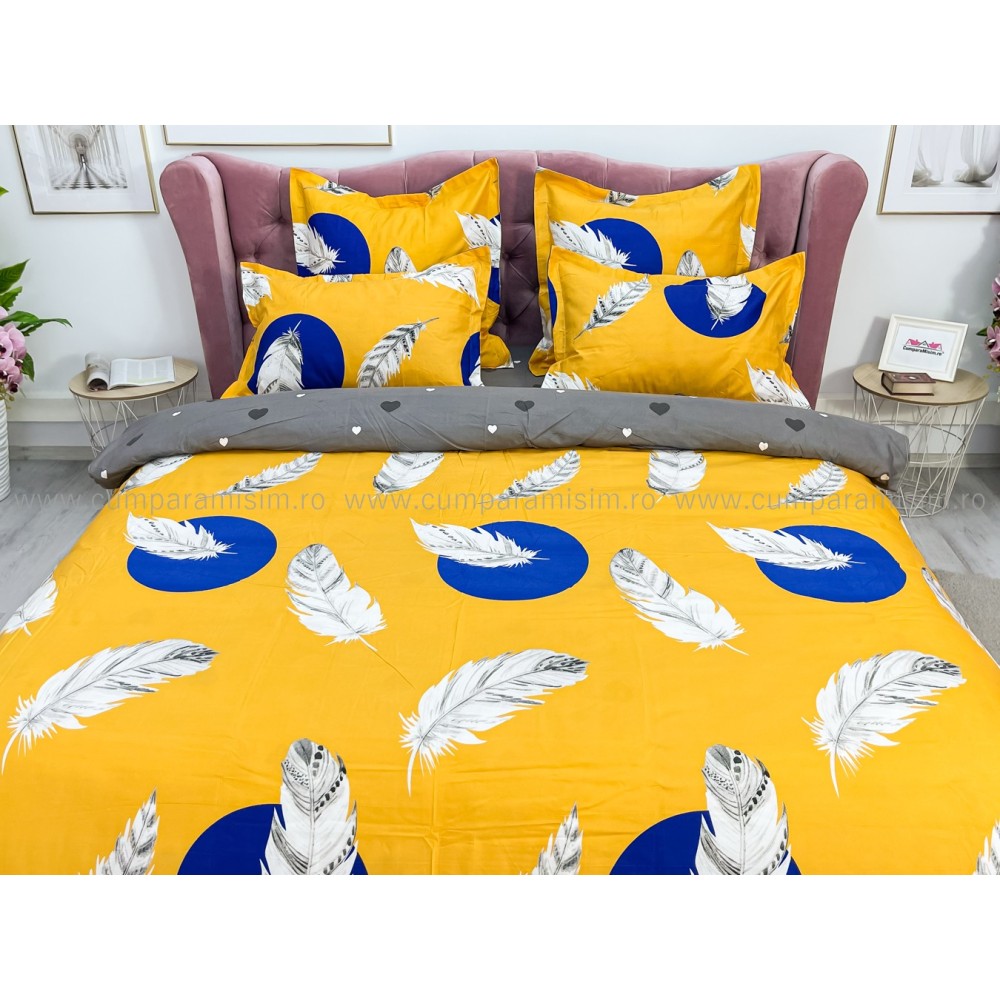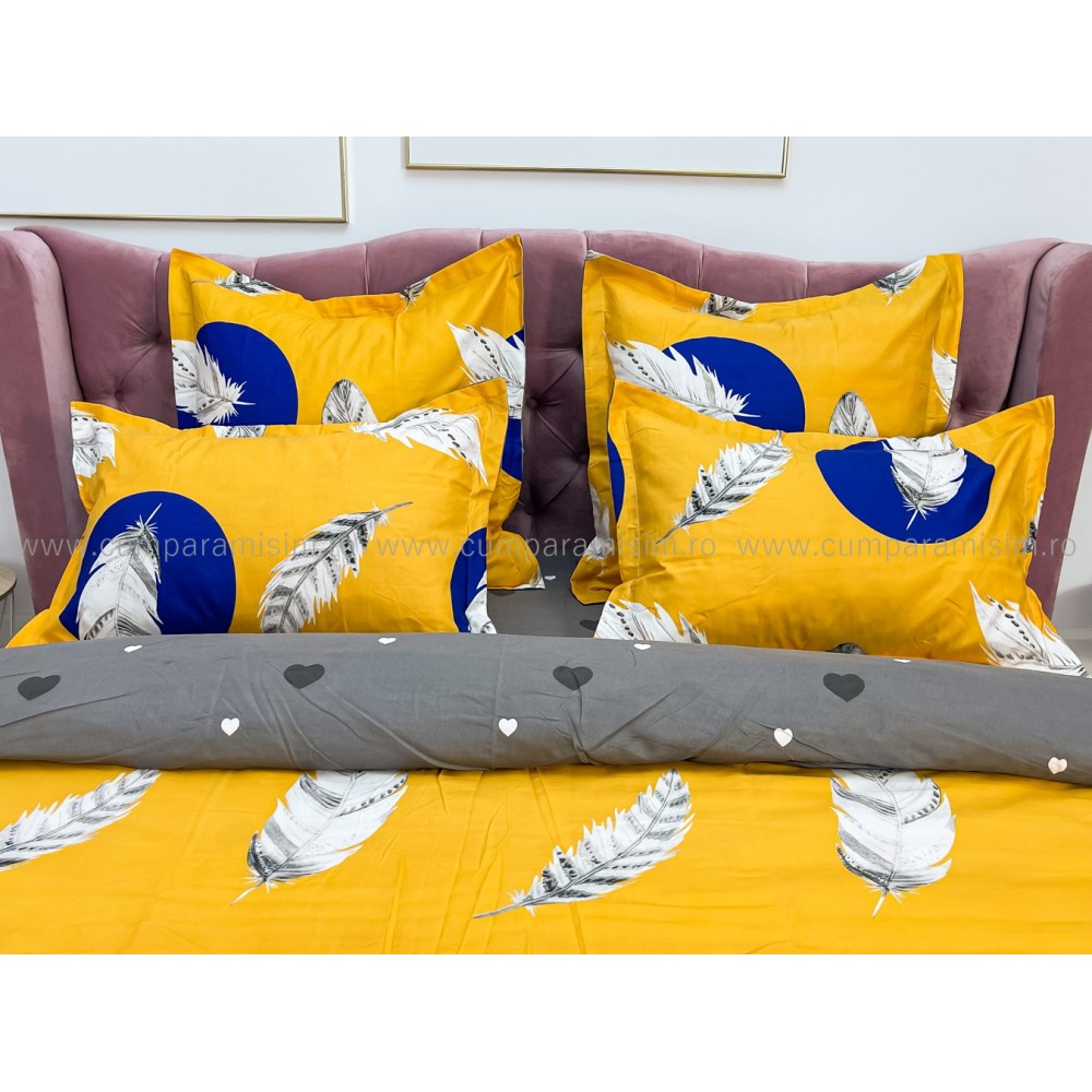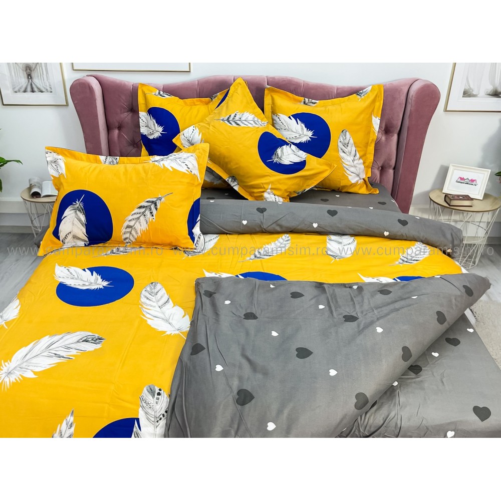 Lenjerie pat dublu, BUMBAC FINET, 6 piese, CU ELASTIC, Galben-Multicolor, pene, Primavara Casa, cod produs: PTK2